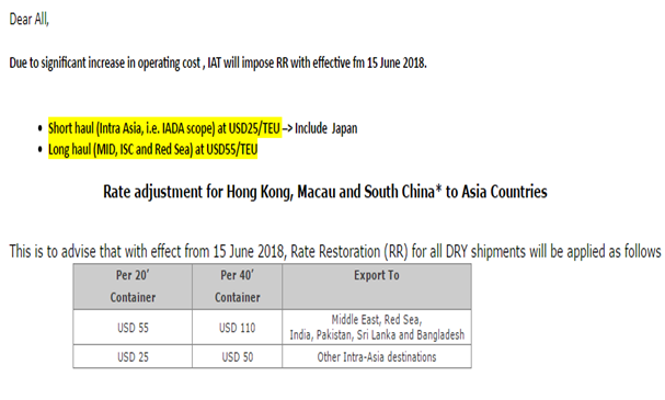 什么是 RR : Rate Restoraton Surcharge 費(fèi)率附加費(fèi)