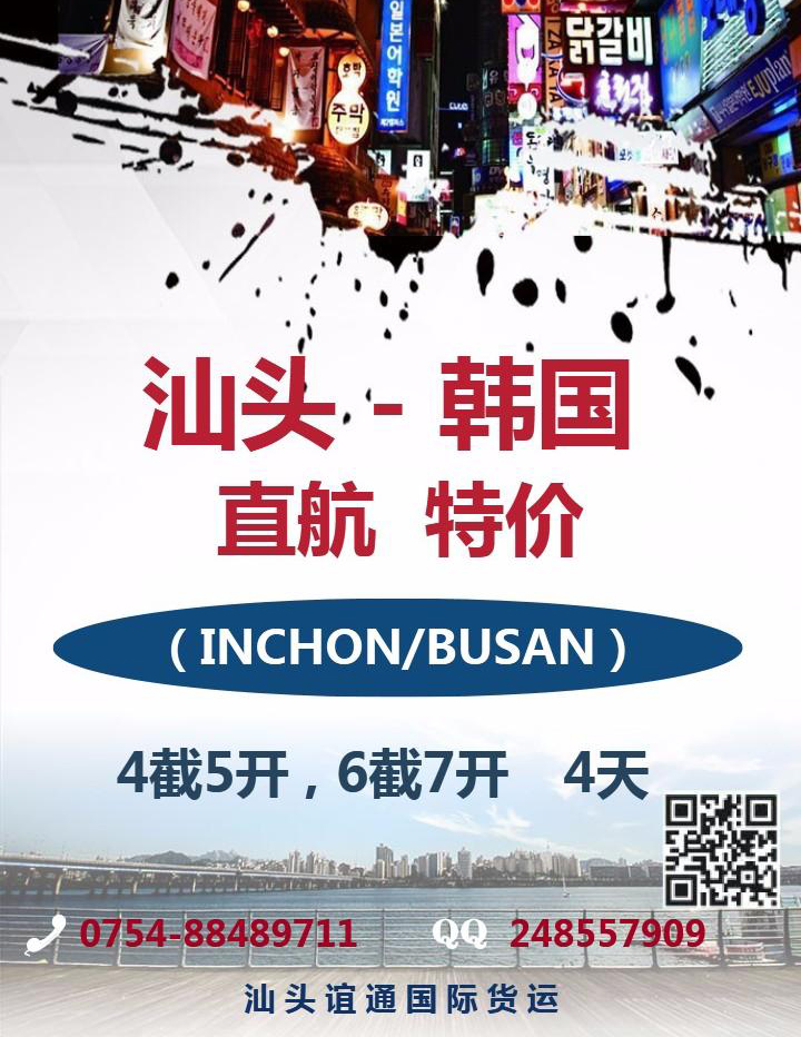 汕頭至韓國(guó)INCHON/BUSAN海運(yùn)直航特價(jià)航線(xiàn)