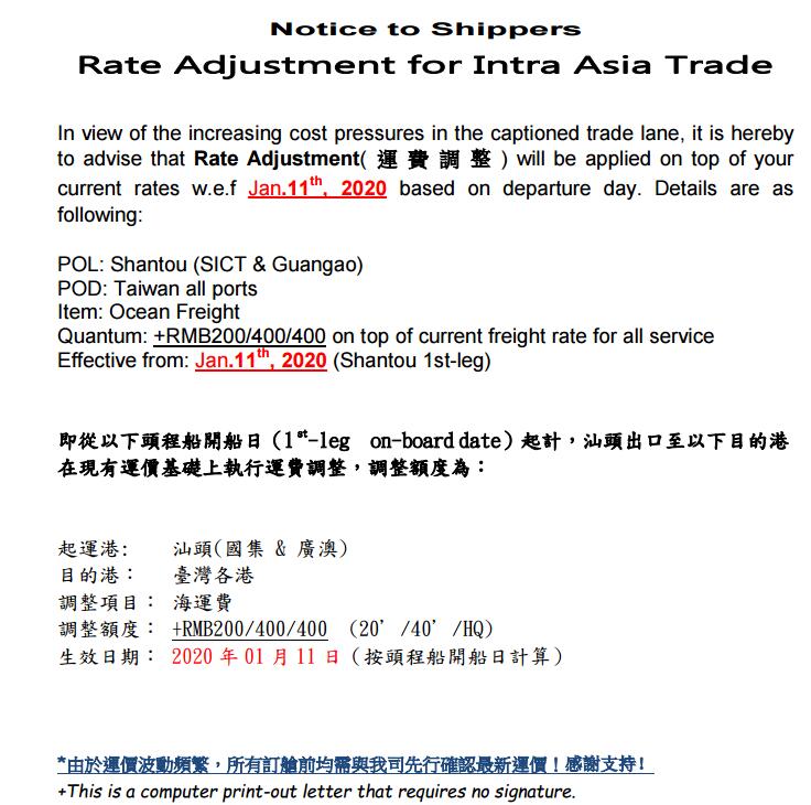 萬(wàn)海航運(yùn)關(guān)于臺(tái)灣航線漲價(jià)通知